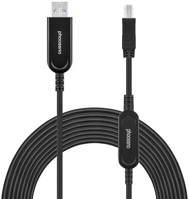 Phoossno USB A to USB B cable is one of active USB 3.0 extension 10Gbps cable, it is optical cable extension solution, use advanced Optical-Electric Converting technology, extension USB 3.0 USB2.0 and USB1.1 signal to 15m max, cable is more Flexible & Light & Slim than traditional passive copper USB cable