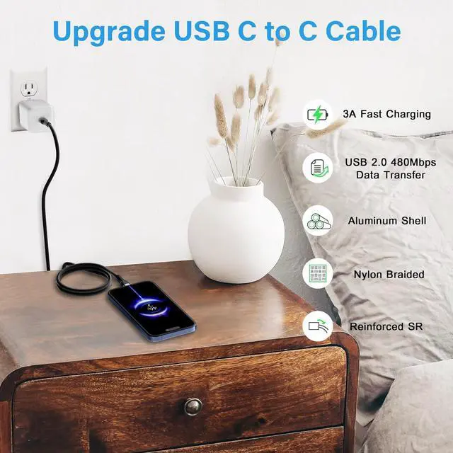 • Fast Charging and Data Sync: This USB-C Cable supports fast charging up to 60W (3A/20V) and data transfer speeds up to 480Mbps. Charging and data transmission in two in one. Note: If you want to achieve 3A fast charging, your charger and device need to support 3A fast charging at the same time.