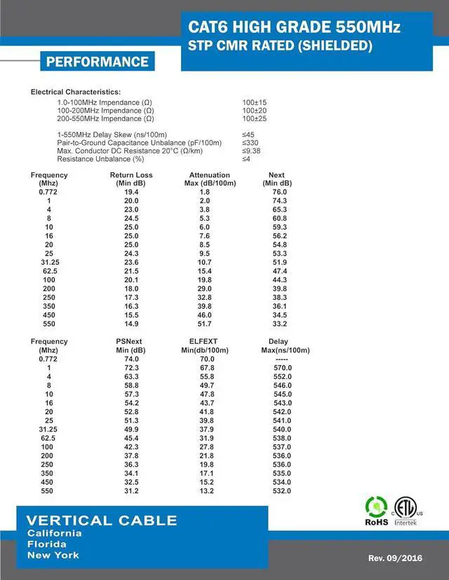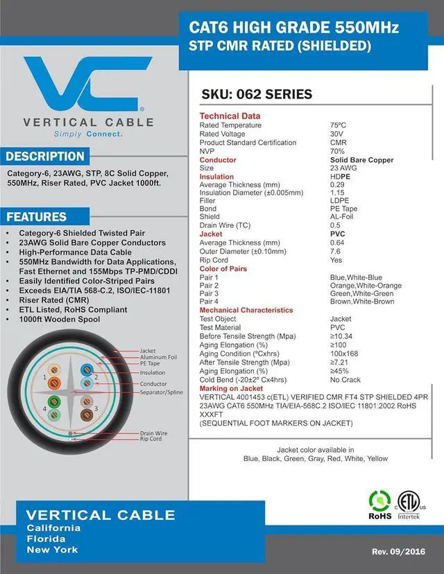 • Cat 6 550 mhz F/UTP 1000 feet