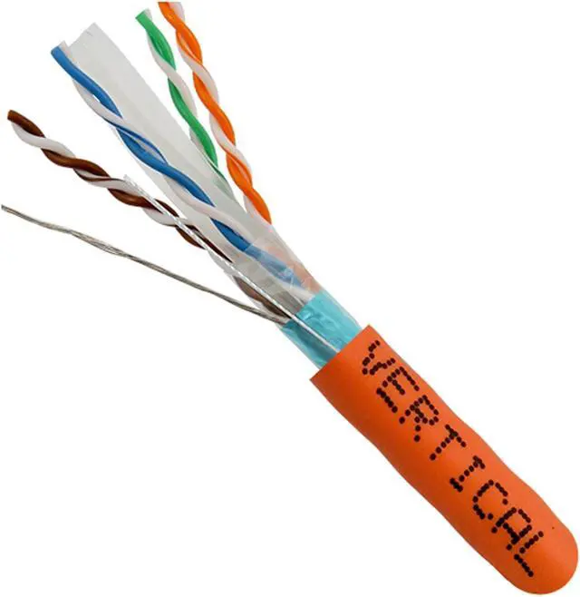Vertical Cable Cat6, 550 MHz, Shielded, 23AWG, Solid Bare Copper, 1000ft, Bulk Ethernet Cable, Orange