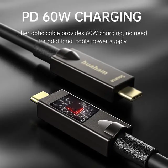Full Featured USB C Fiber Optic Cable USB C Cable 10Gbps signal transmission, supports 60W power supply, integrated charging, and transmission, no need for additional cable power supply. 2-way DP 1.4, supports data, audio, and video signal transmission. Anti-electromagnetic interference, zero data loss.