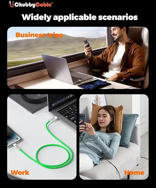 Advanced E-Marker Chip Ensures Safe Charging: ChubbyCables USB C cable features a cutting-edge E-Marker chip that smartly controls power flow to protect your devices from overheating, overcurrent, and damage. Experience reliable, high-speed charging with enhanced safety every time you plug in