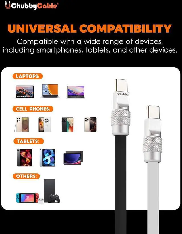 240W Super-Fast Charging & Data Transfer: ChubbyCable USB-C to USB-C cable delivers up to 240W ultra-fast charging and stable data transfer, while USB-A to USB-C supports 60120W. NOTE: Fast charging requires a complete system including a compatible charger, device, cable, and internal power management chip. Built with USB 2.0 (480 Mbps) for reliable syncing and supports CarPlay for smooth in-car connectivity