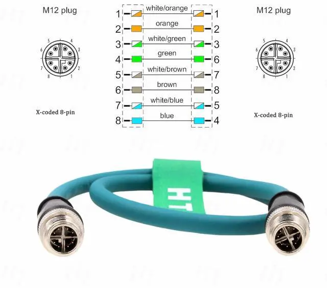 M12 8-pin X-coded cable for Cognex DataMan 260 280 380 370 470 580 reader / In-Sight 2800 3800 2000 9000 8000, 7000 Gen2 vision sensor, 3D-L4000 D900, or Basler Baumer image processing vision sensor, for Keyence IV3 sensor / SR-5000 barcode reader, for Datalogic matrix 220 320 reader, for Microscan HAWK MV-4000 camera, for SICK sensor gigabit network, for Triton