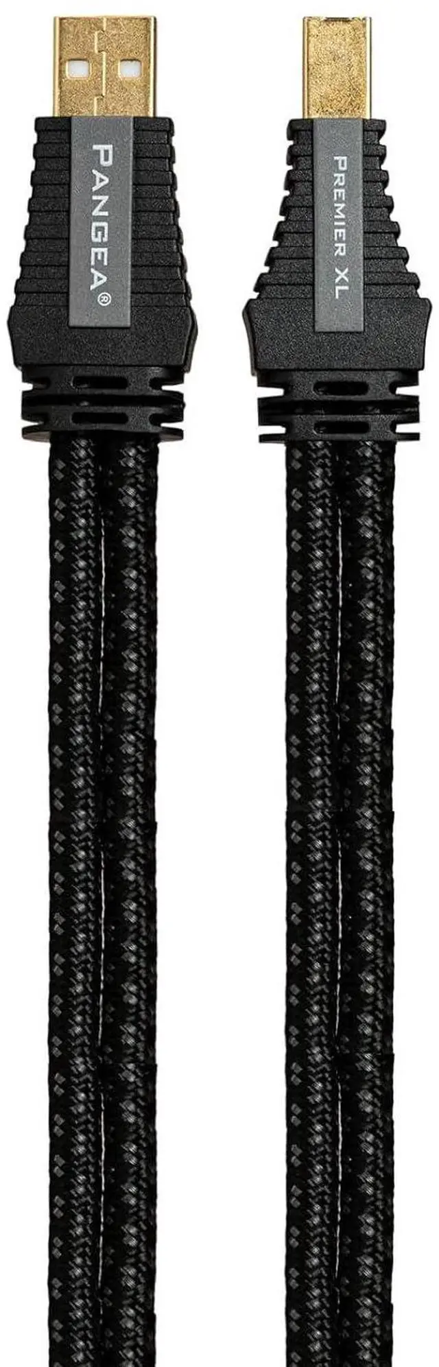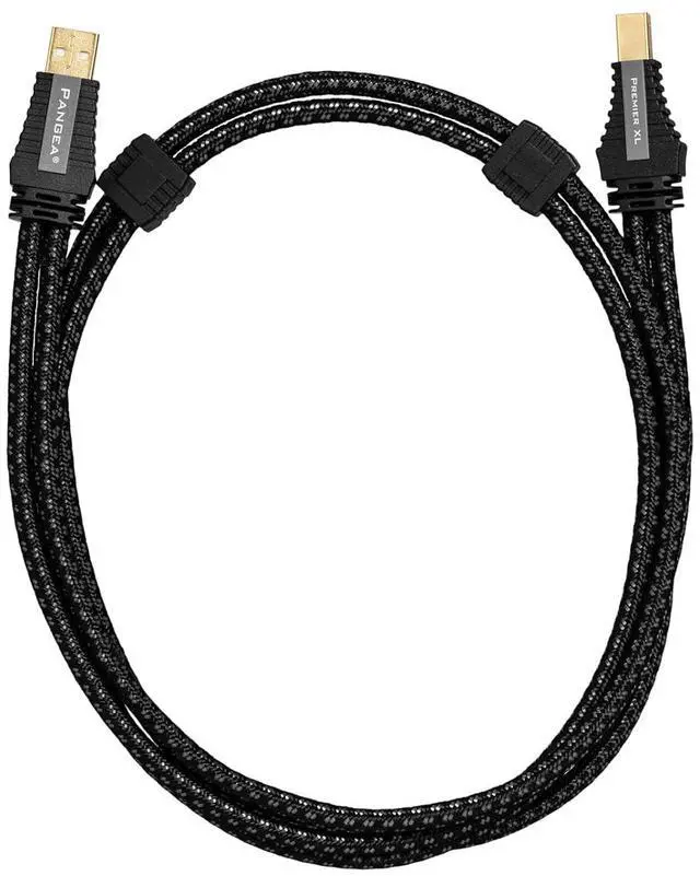 Premium audiophile USB-A to USB-B cable with tough woven nylon braided jacket (black/transparent)
