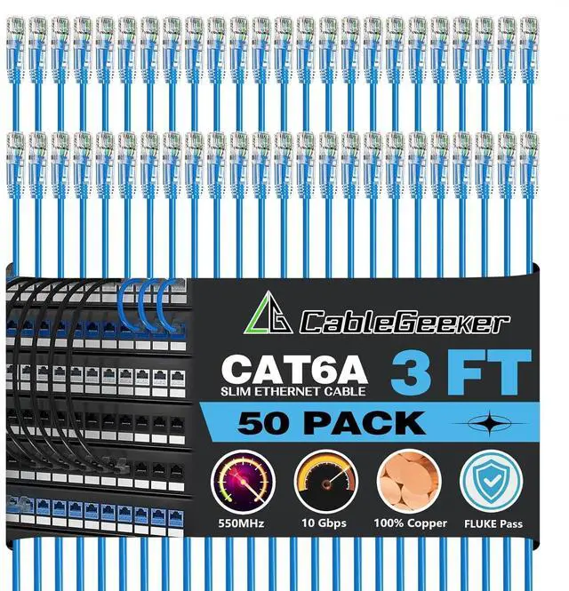Ultra-Thin Design for Maximized Space Efficiency: CableGeeker CAT6A patch cables are approximately half the diameter of traditional patch cables. This means you can fit three of our cables in the same space as a standard one, enabling you to route multiple connections in tight spaces with ease. Perfect for high-density environments like data centers and telecommunications rooms.