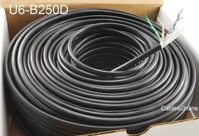 CablesOnline 250ft CAT6 23-AWG 100% Pure Copper Gel Filled Weatherproof Direct Burial Outdoor Bulk Cable, Black, U6-B250D