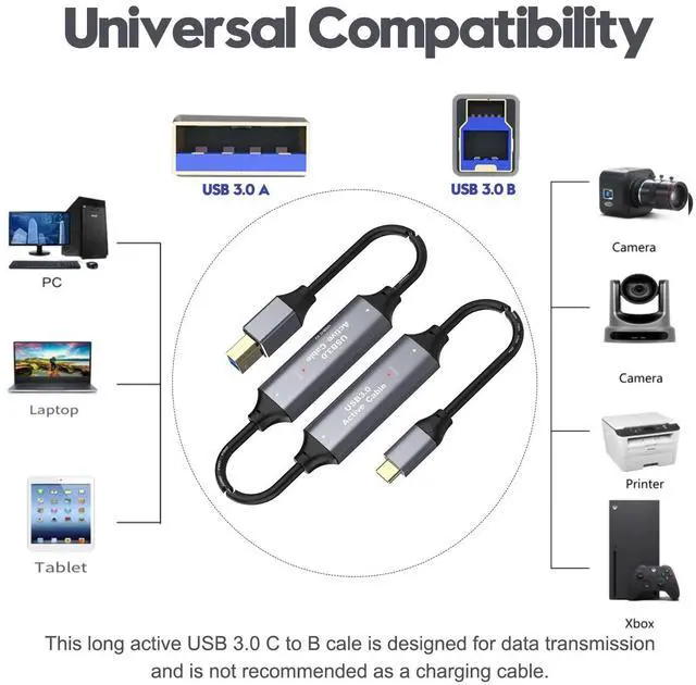 USB C to USB B 3.0 Cable with the super long size, it is long enough for you to print documents or pictures at home or in office. Break the distance limit, free engineering wiring, extend your printing distance and office meeting needs.