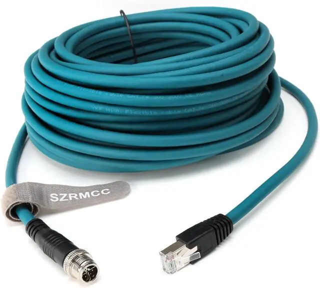 M12 High Flex GigE Vision Cables, which has been designed for Cognex In-sight 2000, 8000, 9000, 8405, 8200, 8400, 8402 vision sensors; Cognex Insight 3D L4000; Cognex DataMan 470/ 260 Reader: 262, DM260Q, DM262QL; Basler ace 2 pro/Basic GigE Vision; Basler blaze 111,101,102; Luxonis OAK-D Pro PoE; Teledyne DALSA BOA; Matrix Vision Lucid Triton GigE Vision Cameras, and other Industrial Machinery, automated inspection and measurement, network applications, supplying power to the vision system.