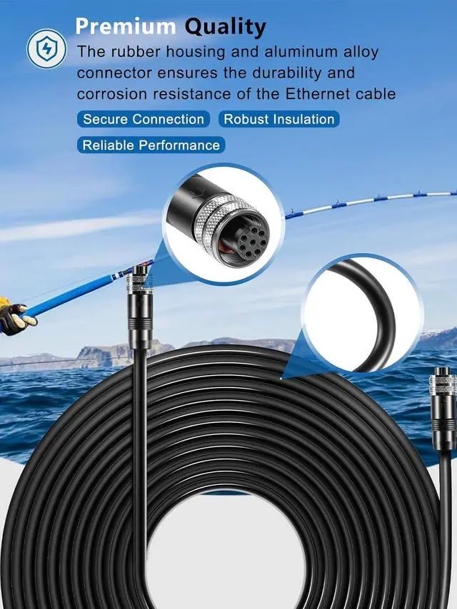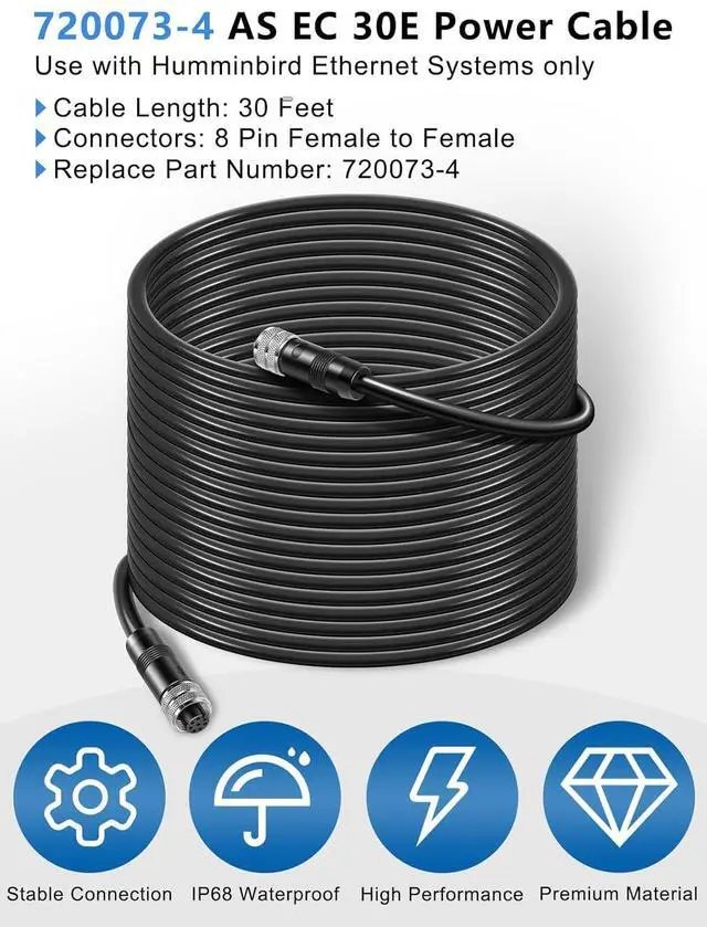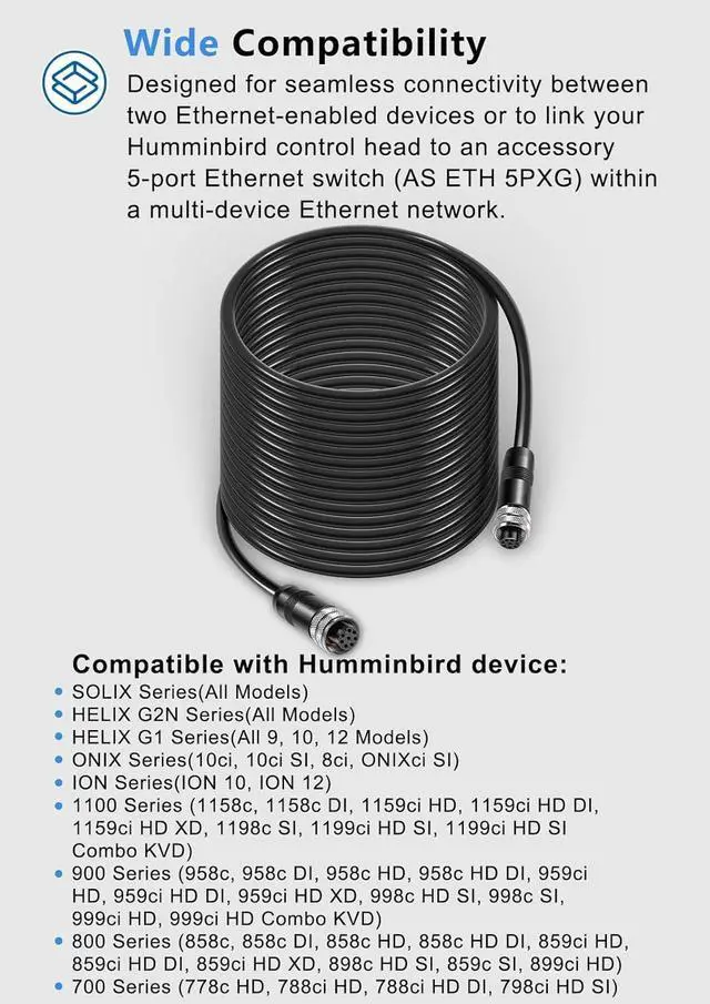Ethernet Devices Connection - This 30-feet Ethernet cable is designed for seamless connectivity between two Ethernet-enabled devices or to link your Humminbird control head to an accessory 5-port Ethernet switch (AS ETH 5PXG) within a multi-device Ethernet network. It's an essential component for expanding your marine electronics setup, ensuring reliable communication across your devices.