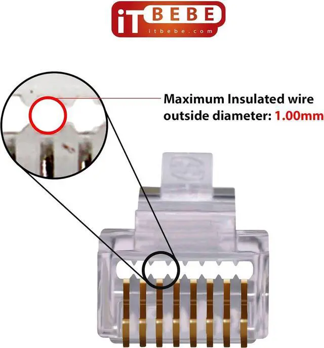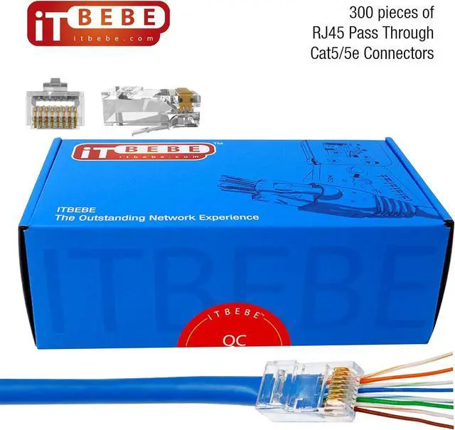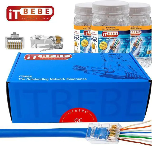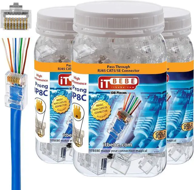 ENHANCES SIGNAL INTEGRITY and clarity by reducing the distance between wire twists and contacts. The versatile ITBEBE RJ45 Connectors are compatible and compliant with all Cat 3, 5 and 5e data networks.