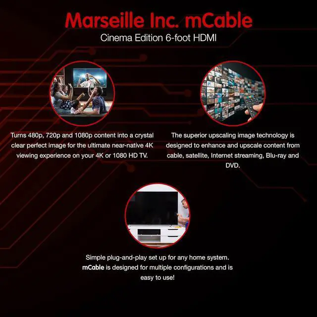mCable turns 480p, 720p and 1080p content into a crystal clear perfect image for the ultimate near-native 4K viewing experience on your 4K or 1080 HD TV.