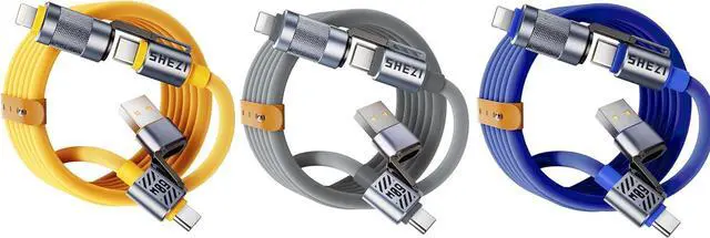 [4-in-1 Multi Charging Cable for All Devices] Simplify your charging setup with our versatile 4-in-1 usb-c cable. It combines 4 ports - USB-C to Lightning, USB-C to USB-C,USB A to USB-C and USB-A to Lightning, - in one cable. Providing a comprehensive solution for your fast charging and data transfer needs.