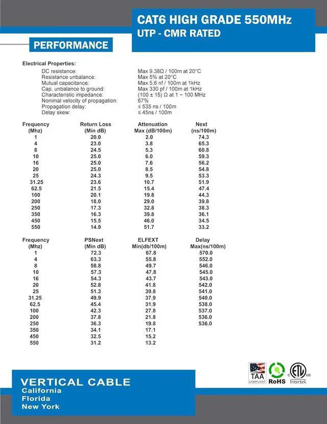 • Unshielded Twisted Pair (UTP) Cable - 550 MHz