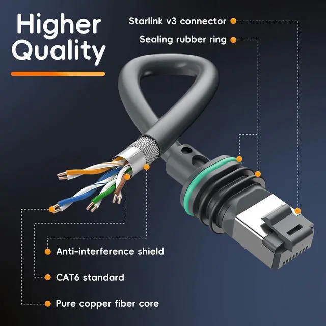 Peak PerformanceOur starlink replacement cable ensures peak performance. With patented advanced soldering-type RJ45 connectors, engineered for all-weather, heavy-duty use, reduce 50% contact resistance.