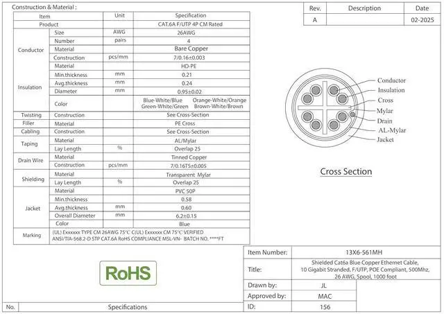 High-Speed Performance: Our Cat6a Ethernet cable is specifically designed for 10GBASE-T applications, ensuring compatibility with both 10-Gigabit Ethernet and ATM products. This allows for unparalleled data transfer rates, making it perfect for environments requiring high-speed connectivity and quick data transmission.