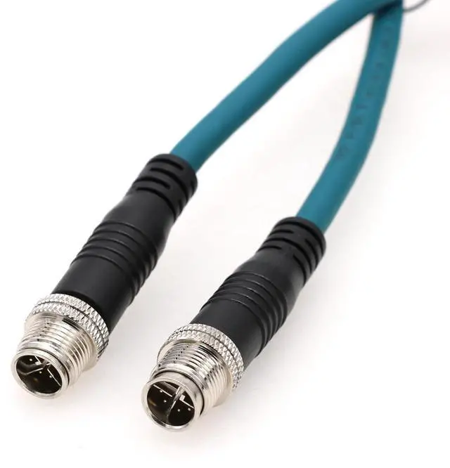M12 Ethernet cable is a single foil twisted pair cat6 cable with a blue PUR jacket rated at 24 AWG wire M12 Connector with gold plated X coded contacts ensure reliable connectivity.