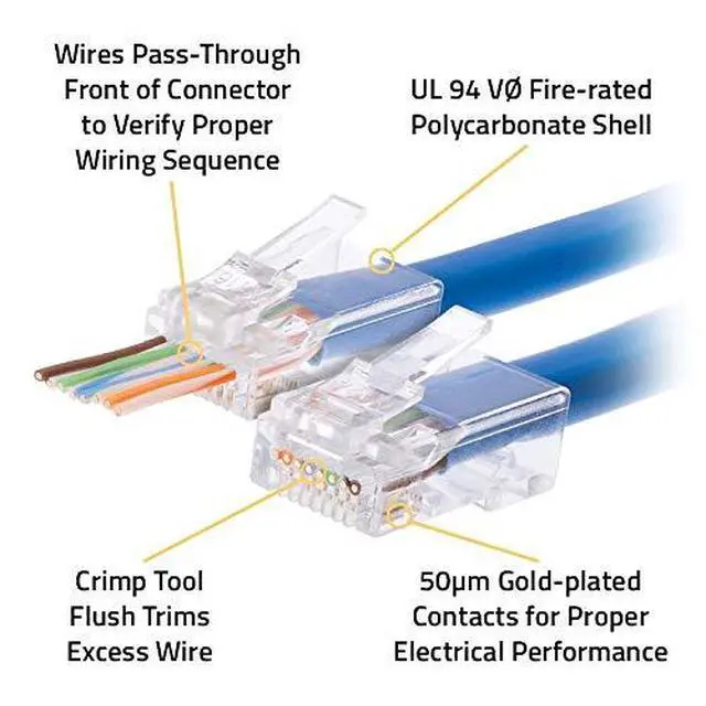 Platinum Tools # 2106J UPC 849160012757 Pass-through design to easily verify proper wiring sequence One connector works with both Cat5e and Cat6 systems 50 µm gold-plated contacts for long-term reliability