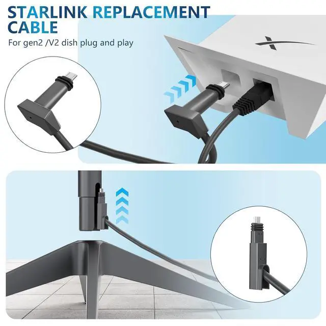 GREAT COMPATIBILITY - Our Starlink replacement extension cable is tailor-made for Starlink Rectangular Satellite V2 with optimal connection guaranteed. Designed according to 1:1 model of original Interface socket to ensure the secure and best fitment.