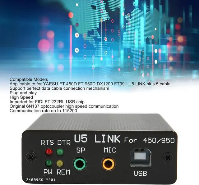 • Compatible : PC Linker adapter radio connector for FT 450D FT 950D DX1200 FT991 U5 LINK plus 5 cable. Support the data line connection mechanism, plug and play.