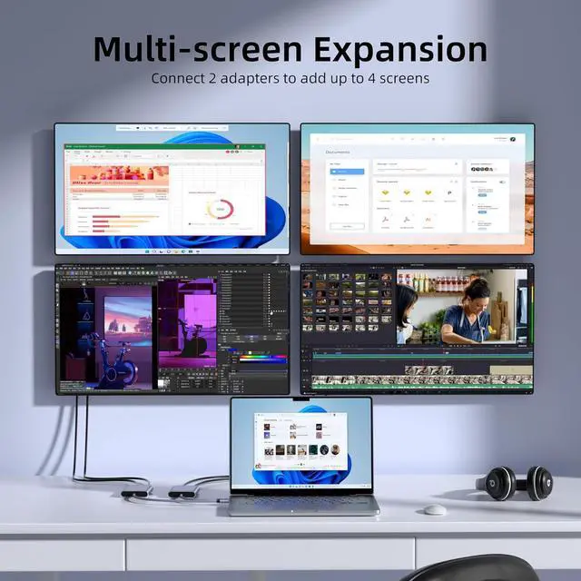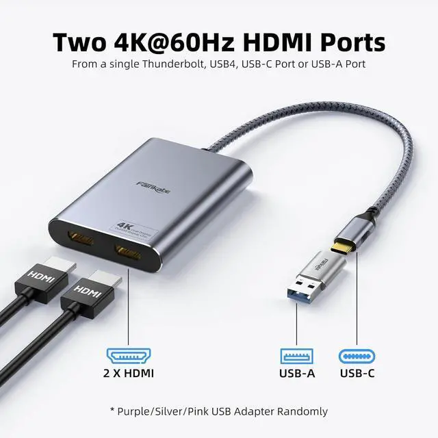 Dual 4K60Hz: This dual HDMI adapter delivers dual 4K60Hz displays from a single USB-C, USB 4, Thunderbolt 3/4, or USB-A port. Designed with DisplayLink technology, the DisplayLink adapter allows you to add 2 extended displays to your mac or windows PC