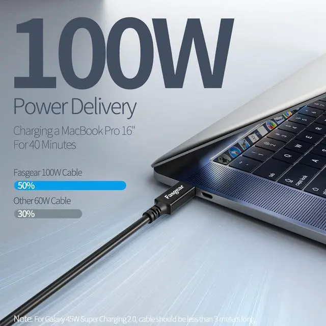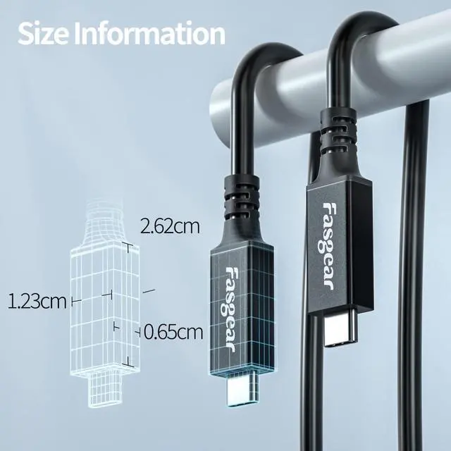 16.5 Feet USB 4 CableFasgear USB-C 3.2 gen2x2 charging cable double as a video cable, which allows you to connect MacBook/Laptop/PC to a second monitor for 5k video output. Good to play comfortably in your virtual reality with this 5M (16.5FT) Quest Link Cable. Updated materials of this cable bring more flexibility for users. Double-sided USB C connectors with over-molded strain relief designed for frequent plugging and unplugging, provide a charger cable with reliable performance.