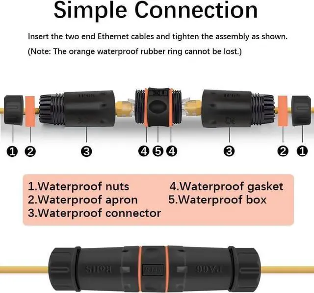 ZUZONG IP68 Waterproof Cat6A RJ45 Coupler Usage: This extender is ideal for extending ethernet connection by connecting 2 short network cables together.