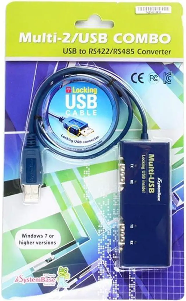 SystemBase - Made In Korea - USB to 2ports R422 RS485 USB Serial Cable (USB to RS422 RS485 Adapter), USB 2.0, DB9 Male, Cable 1.96ft(0.6m) Latching USB Connector Applied (Multi-2/USB Combo)