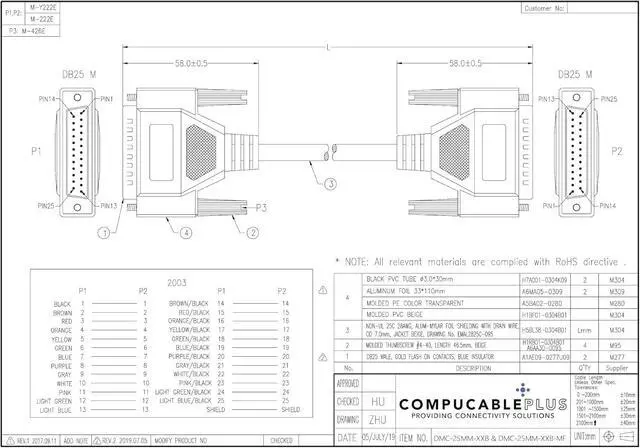 Connector B: DB25 Male.