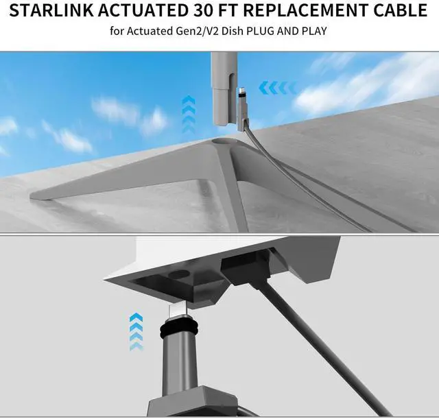 IDEAL LENGTH FOR VERSATILE SETUPS: The 33ft length of this extension cable replacement for Starlink rectangular satellite Gen2 offers optimal flexibility, allowing you to easily position your Starlink setup according to your specific space requirements. Whether you're installing indoors or outdoors, this length provides the perfect balance of reach and convenience for seamless connectivity.
