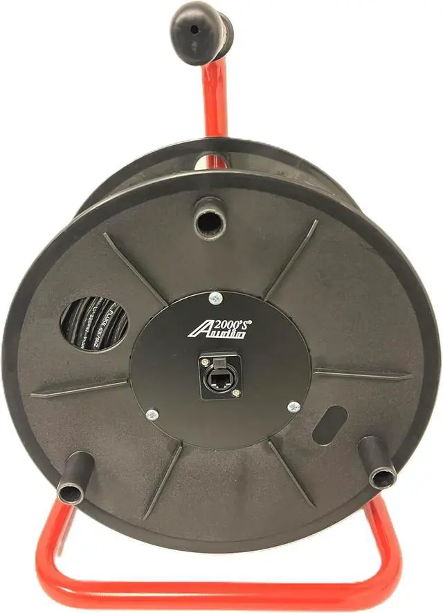 EtherCON-Compatible Cat6E Cable on a Reel with Reel-Stop for Portability, Reliability, Durability, Ruggedness, and ConvenienceEtherCON Compatible Cat6E cable on an upgraded ADC2716 reel with a reel stop for portability, reliability, durability, ruggedness, and convenience