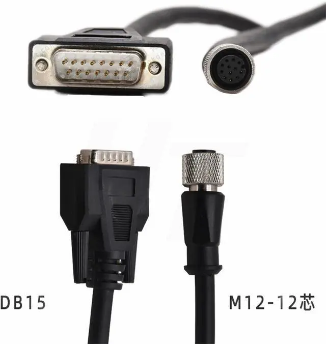M12 A-coded 12 pin female to DB15 connectors, gold-plated contacts, nickel plated brass shell, waterproof, solid and durable connection