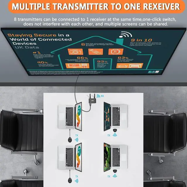 2-in-1 Wireless HDMI USB C Transmitter Wireless hdmi usb c transmitter 4k, the versatility of having both HDMI and USB C is great to use basically any HDMI & USB C output devices that came into the conference room/ live shows / multimedia-education, all without additional configuration.