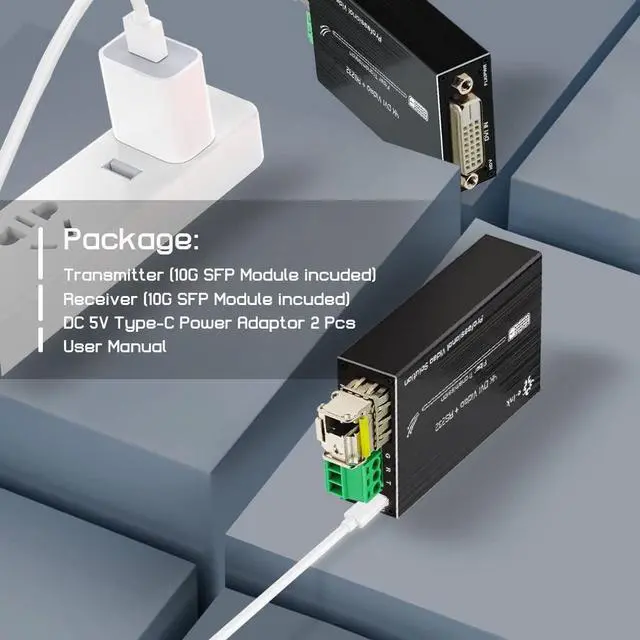Ultra HD 4K Resolution- This DVI optical transceiver supports up to 4K*2K@60Hz resolution, compatible backwards with lower resolution.