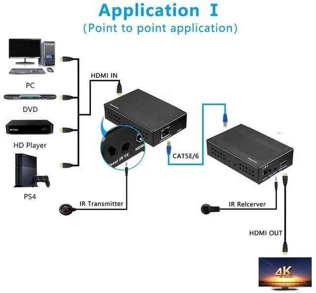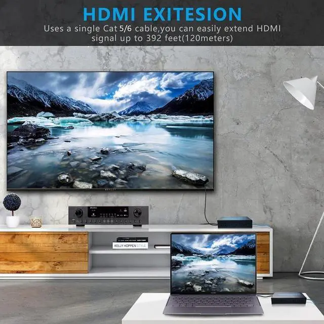 The HDMI signal can be extended by 120 meters through 6 types of network cables to achieve unlimited distance, bringing you more convenient and flexible way. Note: Use CAT5/6 cable up to 120 Extension.