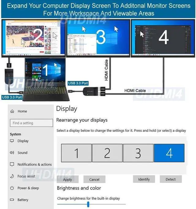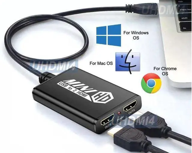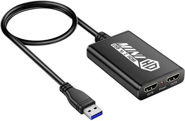 Easy and cost-efficient USB 3.0 to dual HDMI video card and display adapter for expanding computer screen to additional monitor or TV screens.