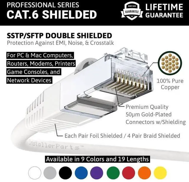 High Quality 100% Copper: Installerparts Patch Cables Are Made Of 100% Bare Copper Wire With 50 Micron Gold Plated Rj45 Plugs. Our Cables Use High Quality, Long-Lasting Materials And Feature A Highly Durable Design At An Affordable Price.