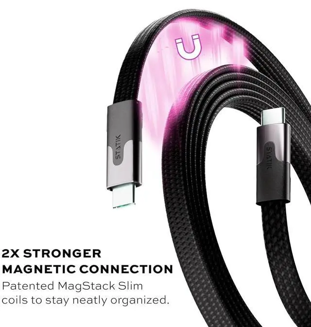 MagStack Slim - PORTABLE AND DURABLE MAGNETIC CHARGER: Perfect for travel, business trips, and daily life, MagStack magnetic phone charger cable is designed for convenience. Easily adjust the magnetic phone charging cable length to suit your needs and enjoy reliable, durable performance with reinforced premium materials that can withstand up to 30kg of pulling force. Simplify your charging setup with the MagStack Slim magnetic phone charger cord.