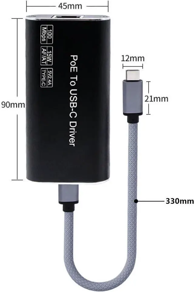 Convert DC44-57v to USB C (Type C) output that deliver 5V/2.4A power and Ethernet data. 1adapter save problem of power supply and Internet access.
