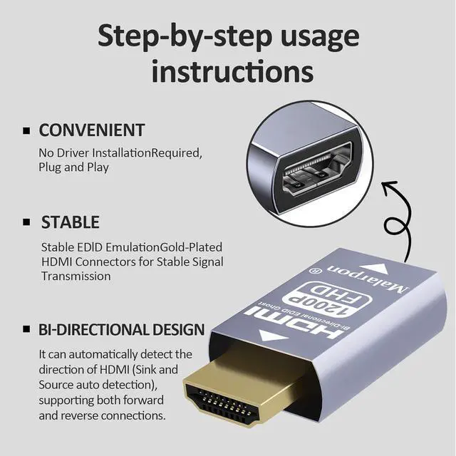 Bi-directional EDIDthe source can be male or female connect.Pixel Format HDMI EDID tell Windows that it is a monitor of the specified resolution, and then pass through the video data to your real monitor. even turn off or disconnect the real one, the device will tell Windows that it is still connected and Windows will not try to rearrange things. it does in fact work with DP to HDMI adapters flawlessly