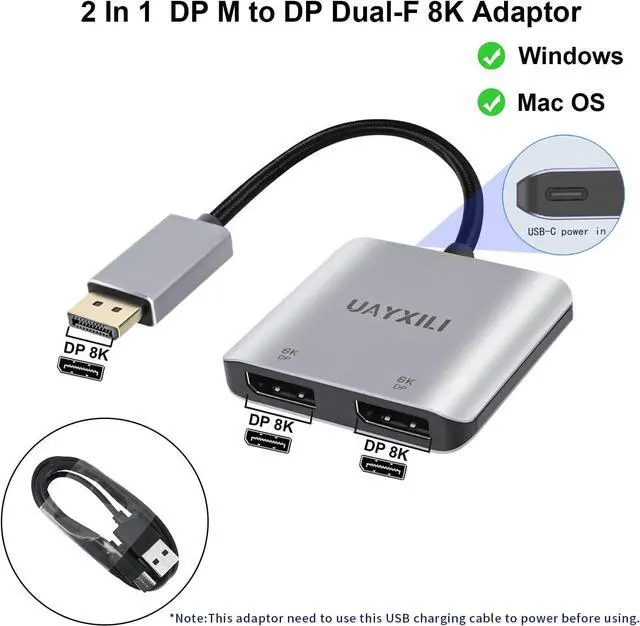 8K60Hz UHD Resolution/Audio & Video Sync Transmissiom:UAYXILI DP to Dual DP adapter for dual monitor extended Display, DP1.4 for single displayport screen resolution up to 8K@60Hz and dual display port screen resolution up to 4K@60Hz.(Note: To achieve single 8K resolution, make sure that the input device ports are at a minimum of the DP 1.4 version that support 8K at the same time).Ideal for multi-stream displays in schools, conference rooms, worship halls, retail stores, and more, it provides ultra-high-definition display content.