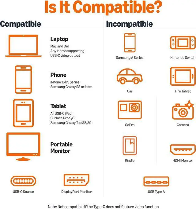 PLUG & PLAY: No extra driver/software needed; hosts USB-C port requires DP 1.2 Alt Mode to view video over USB-C (not all USB-C ports support Alt Mode functionality)