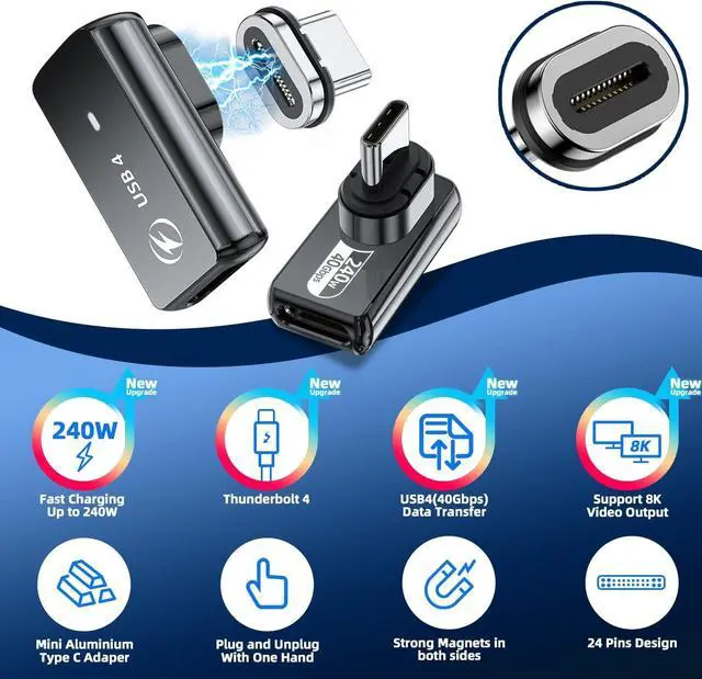 40Gbps and 8K@60Hz Video: Thanks to technology upgrades, DuHeSin new magnetic usb c adapter straight meets power specs and data transfer rates of USB 4, supports 40Gbps data transmission speed. With USB4 cable, the usb type C magnetic adapter support 8K@60Hz HD video & audio output. Not only can it be used with docking station /hub, but also it has excellent performance with Quest 2.