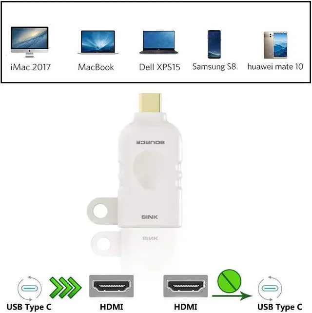 USB C to HDMI Adapter is compatible with MacBook Pro 2018, iMac 2017, 2016/2015 MacBook, compatible with Samsung Galaxy S9/S9 Plus, Note 8, S8/S8 Plus ( Support devices with DP Alt mode)