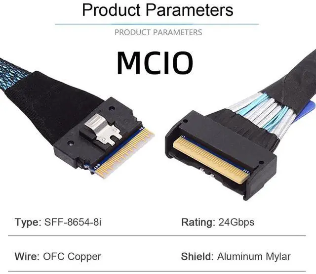 What is mini cool edge Io (MCIO): MCIO cables are designed for data center, networking and telecommunications markets that use SAS, PCIe, Ethernet and othersignal protocols.