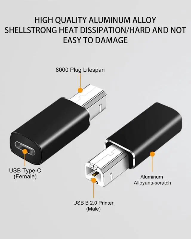 Durable Aluminum BodyShineeKee USB C Female to Printer Male Adapter connector is made from high-quality, scratch-resistant aluminum alloy, passes 6000+ Push/Pull Test,innovative engineering ensures durability and a long life span. Usually placed on the unit to protect the original plug from being damaged by excessive use.