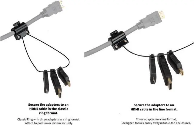 Flexible Tethering: Set the adapters in a ring or line format, designed to tuck easily away in table-top enclosures