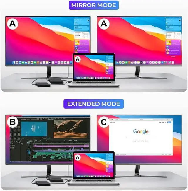 Extend or Mirror - Functions similarly to a DisplayLink adapter to mirror or extend display of MacBook M1 and M2.