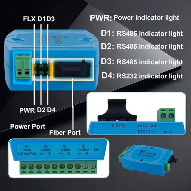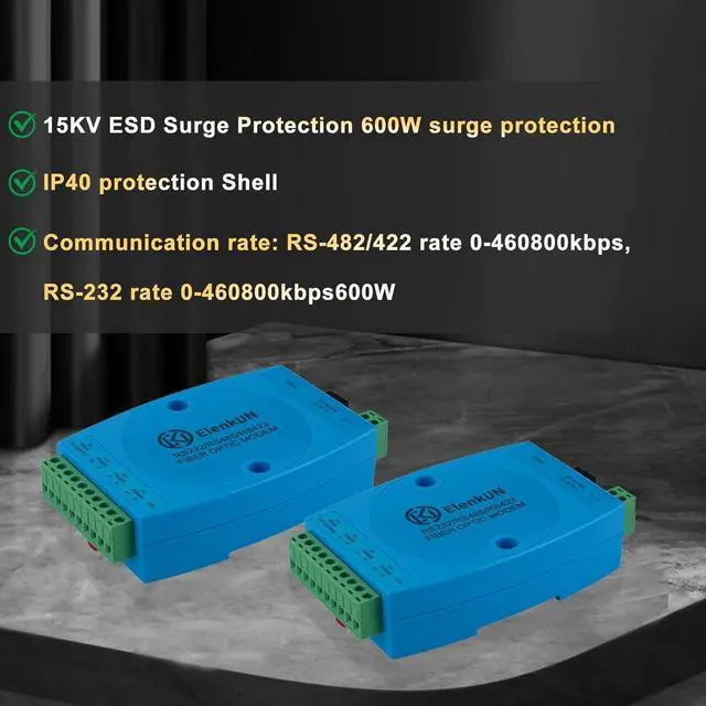 Fiber media converter ommunication rate: RS-482/422 rate 0-460800kbps, RS-232 rate 0-460800kbpsInterface characteristics: 15KV ESD surge protection 600W