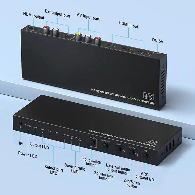 Y.D.F 3 HDMI 2.0/4K@60Hz/18Gbps + 1 RCA to HDMI Converter Selector2 in 1 with Audio Extractor.Designed for Multiple Gaming Consoles